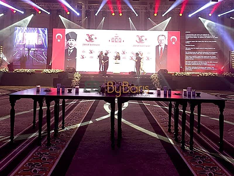 By Barış Organizasyon olarak, 30 Ağustos Zafer Bayramı’nı kutlamak için Hilton Bomonti Otel’de büyük bir etkinlik gerçekleştirdik. Bu anlamlı günü, katılımcılara en özel şekilde yaşatabilmek için her detayı titizlikle planladık. Otelin şık atmosferi, özenle hazırlanan dekorasyon ve ayrıntılarla birleşerek görsel bir şölen sundu.