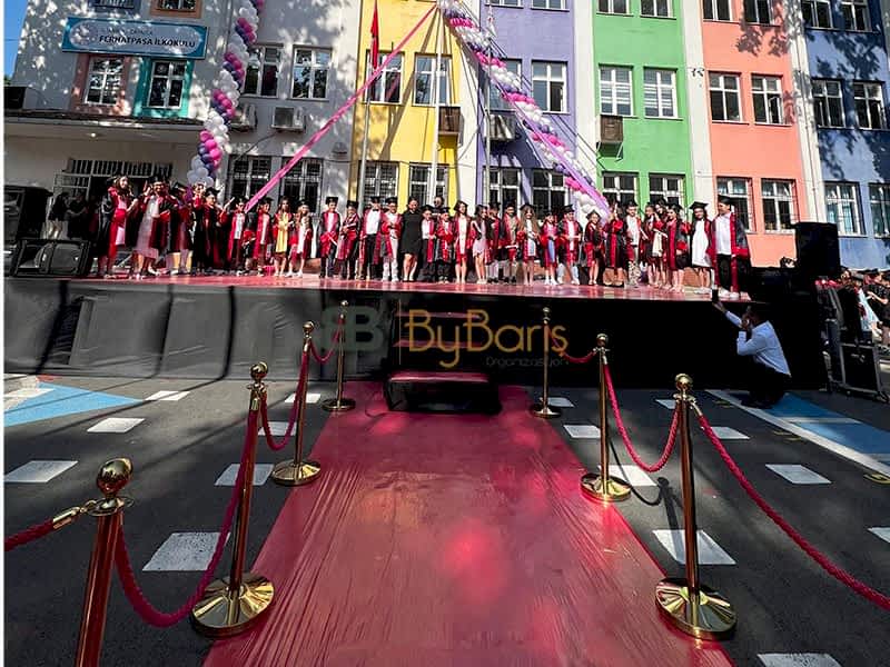 Kırmızı Halı Kiralama: Öğrenciler, törene kırmızı halıdan geçerek adeta yıldızlar gibi yürüdü.