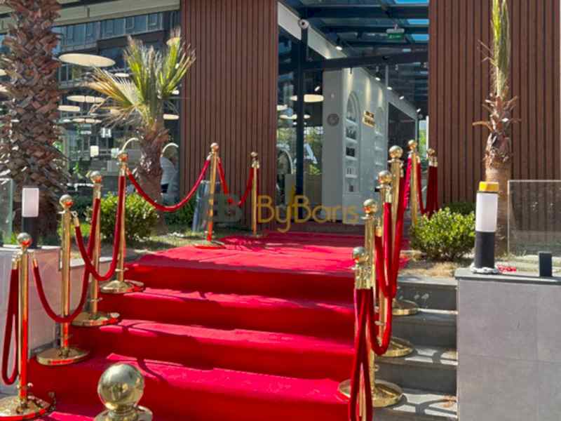 Katılımcıların etkinliğe girişini şıklıkla taçlandırmak için kırmızı halı dekoru kullandık. Her bir misafir, etkinliğe adım attığında özel hissederek unutulmaz bir deneyim yaşadı.Pirinç Bariyer Kiralama: