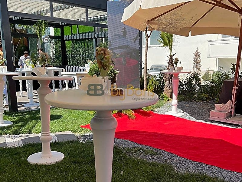 Etkinlik alanındaki oturma düzenini şıklık ve zarafetle tamamlamak adına lake bistro masaları kiraladık. Hem estetik hem de fonksiyonel bir kullanım sağlayarak misafirlerin konforunu sağladık.Lake Kokteyl Masası: