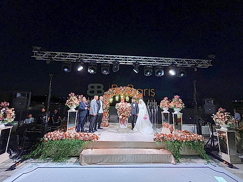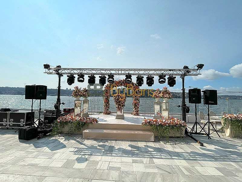 Işık ve Ses Sistemi: Düğün boyunca profesyonel ses ve ışık sistemleri ile müzik, aydınlatma ve görsel şovları mükemmel bir şekilde harmanladık. Işıltılı ışıklarla geceyi daha da özel hale getirdik.