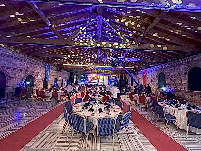 Etkinliğin iç mekanını şıklık ve zarafetle taçlandırdık. Halı kaplama dekoruyla alanın atmosferini tamamen dönüştürdük, katılımcılara sıcak ve davetkar bir ortam sunduk.Ses Sistemi Kiralama: