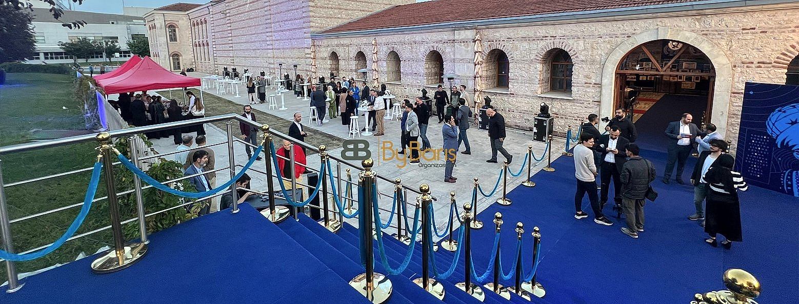 Etkinliğin profesyonel bir atmosferde geçmesini sağlayacak şekilde, özel olarak tasarlanmış bir backdrop hazırladık. Katılımcılar için mükemmel fotoğraf fırsatları yaratırken, etkinliğin kurumsal kimliğini vurgulayan şık bir alan sunduk.Pirinç Bariyer Kiralama: