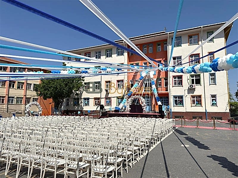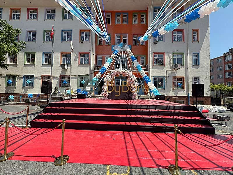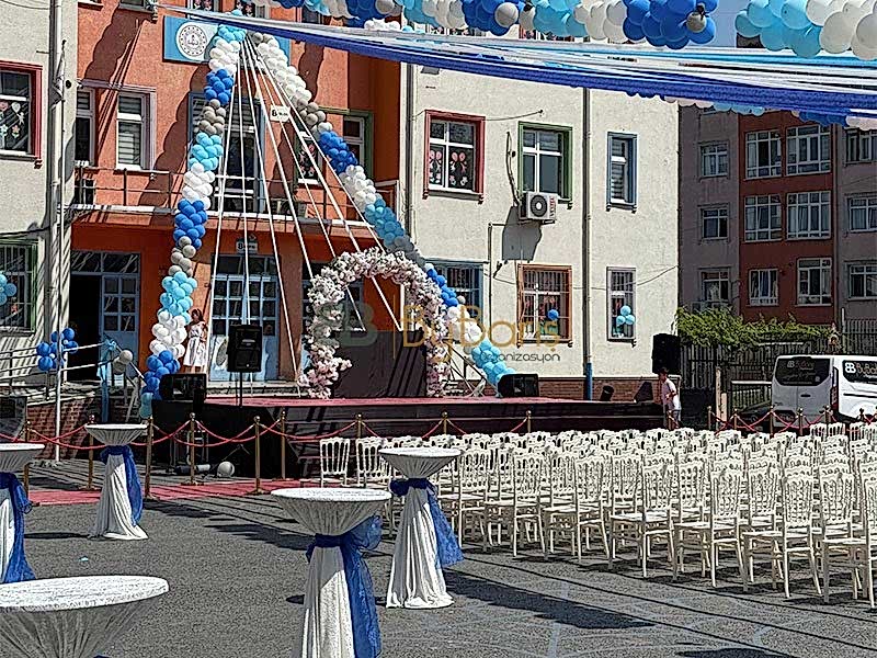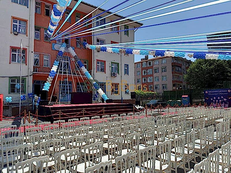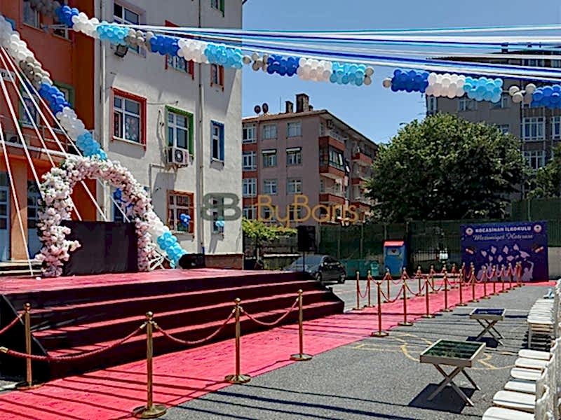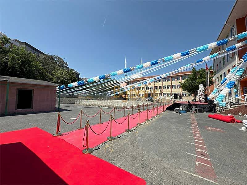 Balon süslemesi: Renkli ve şık balonlar, tören alanını görsel olarak canlandırır.