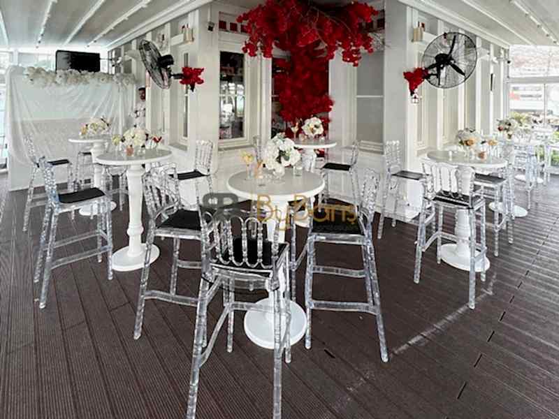 Lake Bistro Masa Kiralama: Etkinlik alanını şık bir şekilde düzenlemek için kaliteli lake bistro masalar kiraladık. Masalar, nişan töreninin şıklığını ve zarafetini vurguladı, misafirlerin rahatça oturabileceği düzeni oluşturdu.