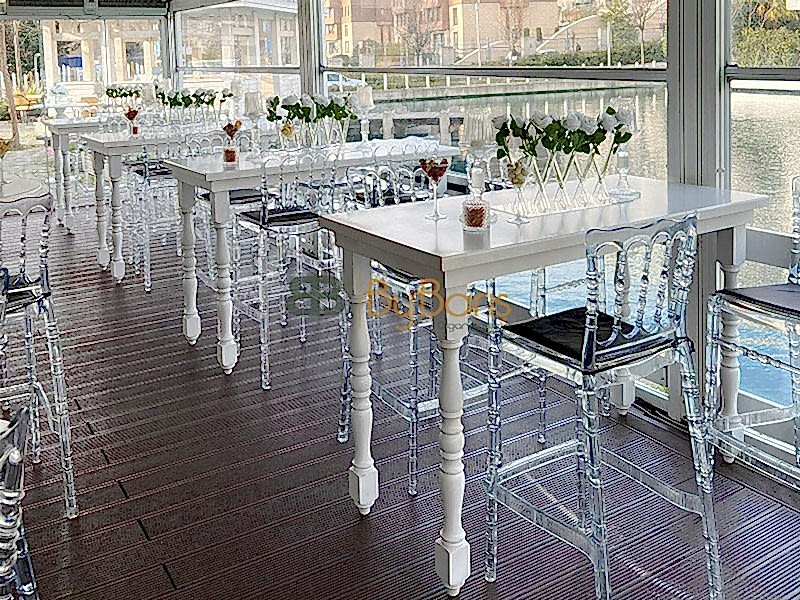 Lake Dikdörtgen Bistro Masa Kiralama: Yine şıklığı ön planda tutarak, lake dikdörtgen bistro masalar kiraladık. Bu masa düzeni, hem estetik açıdan hem de konfor açısından etkinliğe değer kattı.